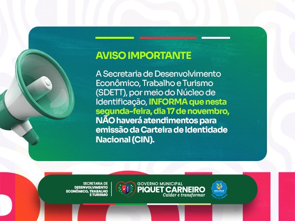 A Prefeitura Municipal de Piquet Carneiro convida a população para a Audiência Pública do Plano Municipal de Saneamento Básico (PMSB), nas modalidades de abastecimento de água e esgotamento sanitário. O documento foi elaborado com base na Lei Federal nº 11.445/2007, que estabelece as diretrizes nacionais e os princípios fundamentais para o setor, os quais deverão ser atendidos para o alcance da universalização e a integralidade do acesso, propiciando formas adequadas à saúde pública e à proteção do meio ambiente. Para participar da audiência pública do PMSB, acesse o link https://meet.google.com/txk-fumr-qjm. A audiência Pública será no dia 31 de janeiro de 2025 (sexta-feira-feira), às 08h30min.