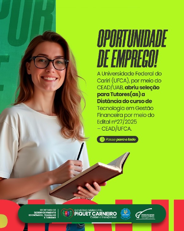 #oportunidadedeemprego #nívelsuperior #tutor #tutora #educação #ufca #uab #universidadeabertadobrasil #polouab #piquetcarneiro #sdett
