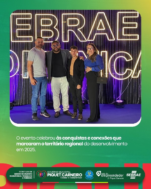 O evento na última quarta-feira (10) e destacou a importância da integração entre cidades e o SEBRAE, promovendo diálogo, troca de experiências e prestação de contas das ações realizadas ao longo de 2025. Um momento marcante para reafirmar o compromisso de Piquet Carneiro com o fortalecimento do empreendedorismo local.
