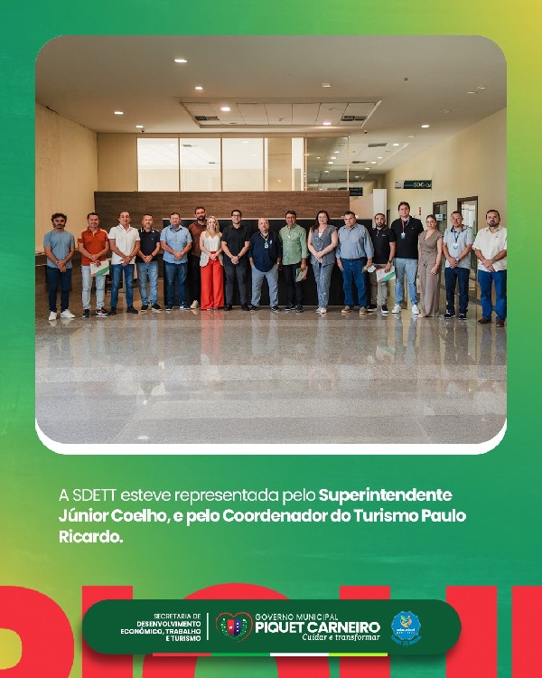A SDETT esteve representada pelo Superintendente Júnior Coelho e pelo Coordenador de Turismo Paulo Ricardo, reafirmando o compromisso da gestão municipal com a capacitação contínua e a melhoria das políticas públicas.