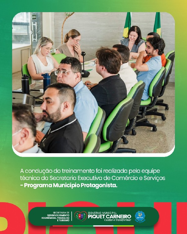 A condução do treinamento foi realizada pela equipe técnica da Secretaria Executiva de Comércio e Serviços, dentro do Programa Município Protagonista, iniciativa que visa fortalecer os municípios na promoção do desenvolvimento econômico sustentável.