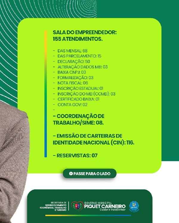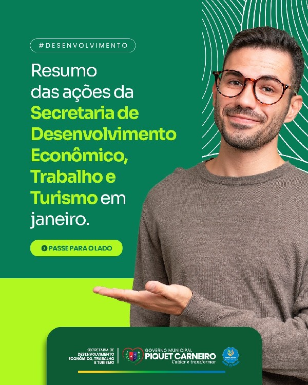 A Secretaria de Desenvolvimento Econômico, Trabalho e Turismo (SDETT), torna público o balanço das ações ocorridas durante o mês de Janeiro/2026.