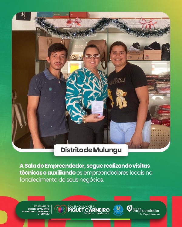 Na manhã da última quarta-feira (26), a equipe da Sala do Empreendedor da Secretaria de Desenvolvimento Econômico, Trabalho e Turismo (SDETT) esteve no Distrito de Mulungu realizando mais uma rodada de visitas técnicas aos negócios locais, fortalecendo a parceria com nossos empreendedores e levando orientações importantes para o crescimento de cada empreendimento.