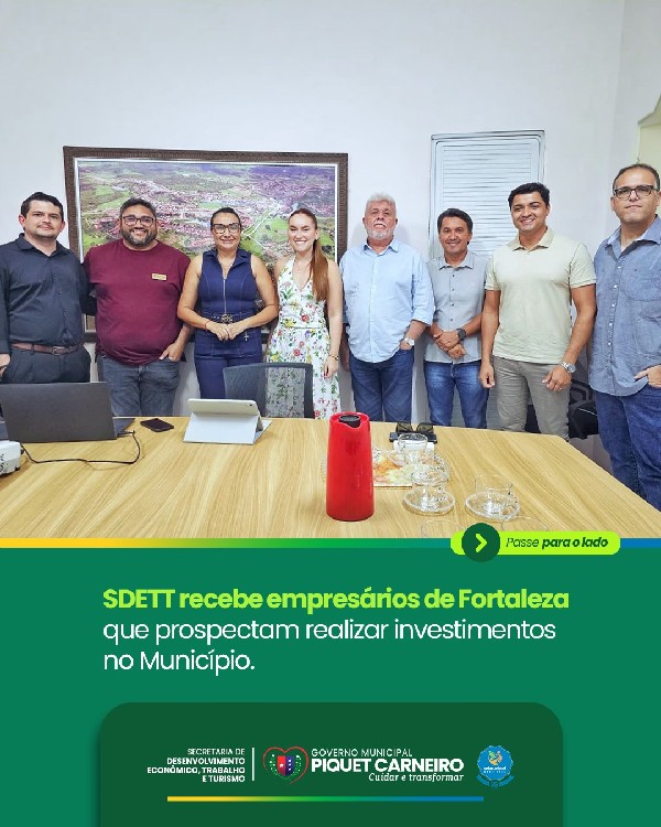 A Secretaria de Desenvolvimento Econômico, Trabalho e Turismo (SDETT) recebeu nessa manhã de quinta-feira (26) empresários de Fortaleza interessados em conhecer de perto as potencialidades de Piquet Carneiro e prospectar novos investimentos.