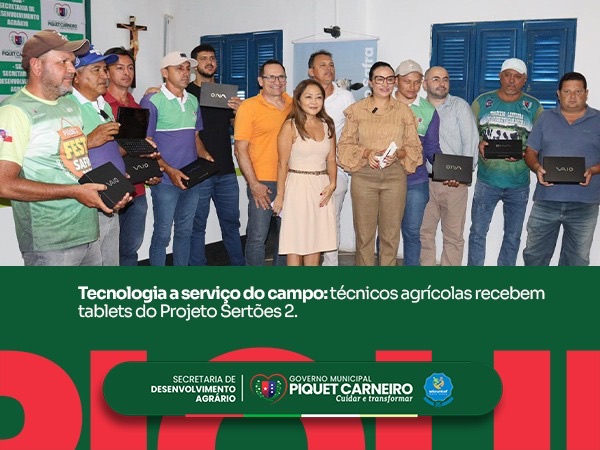 Investimentos: Aquisição de motocicletas e veiculo para apoio a assistência técnica, aquisição de 05 máquinas agrícolas (Caminhão caçamba, Caminhão cisterna, Pá carregadeira, Motoniveladoura e retroescavadeira) via PAC 2, implantação de 03 tanques de coletas de leite nas comunidades de Monteiros, Ema e Catolé da Pista, aquisição de equipamentos para apoio ao Grupo de mulheres do Sítio Salão, Implantação de uma casa do mel no sítio Olho D Água para a Associação dos Apicultores de Piquet Carneiro e Implantação de 12 kits de irrigação. Além das maquinas doadas pelo MDA o município adquiriu mais 05 máquinas agrícolas via Ministério da Agricultura Pecuária e Abastecimento ? MAPA (02 caminhões caçambas, 01 retroescavadeira, 02 tratores traçados)