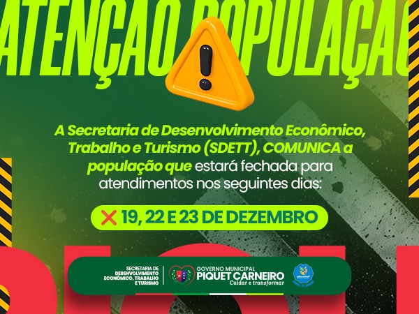 Declara período excepcional de recesso das atividades administrativas de atendimento externo ao público no âmbito da Prefeitura de Piquet Carneiro e dá outras providê [...]