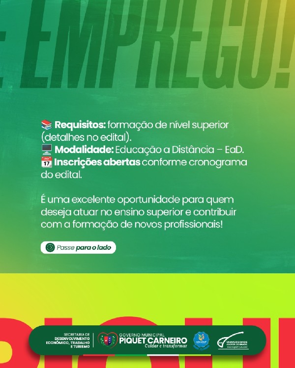 #oportunidadedeemprego #nívelsuperior #tutor #tutora #educação #ufca #uab #universidadeabertadobrasil #polouab #piquetcarneiro #sdett