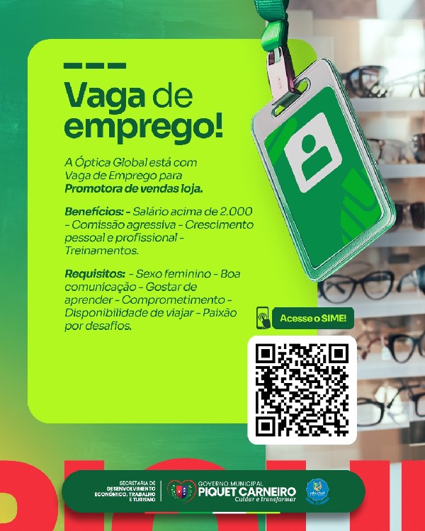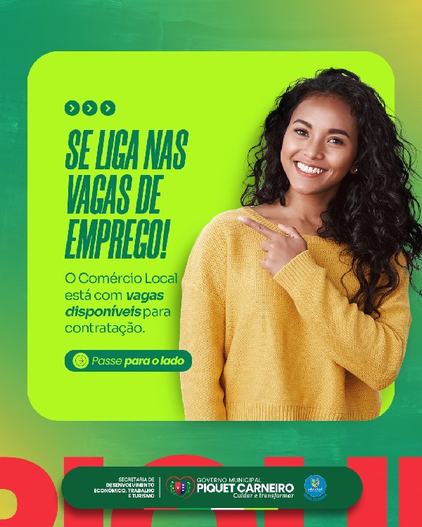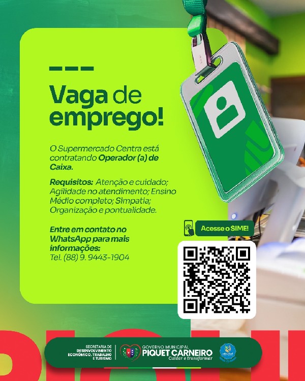 #vagasdeemprego #oportunidade #operadordecaixa #promotoradevendas #comerciolocal #Sdett #sime #PiquetCarneiro