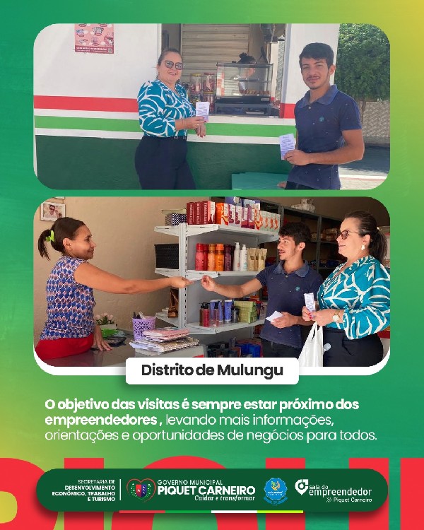 O objetivo das visitas é estar cada vez mais próximo dos empreendedores de Piquet Carneiro, oferecendo informações, suporte, oportunidades e reforçando o compromisso da SDETT e SEBRAE com o desenvolvimento econômico do nosso município.