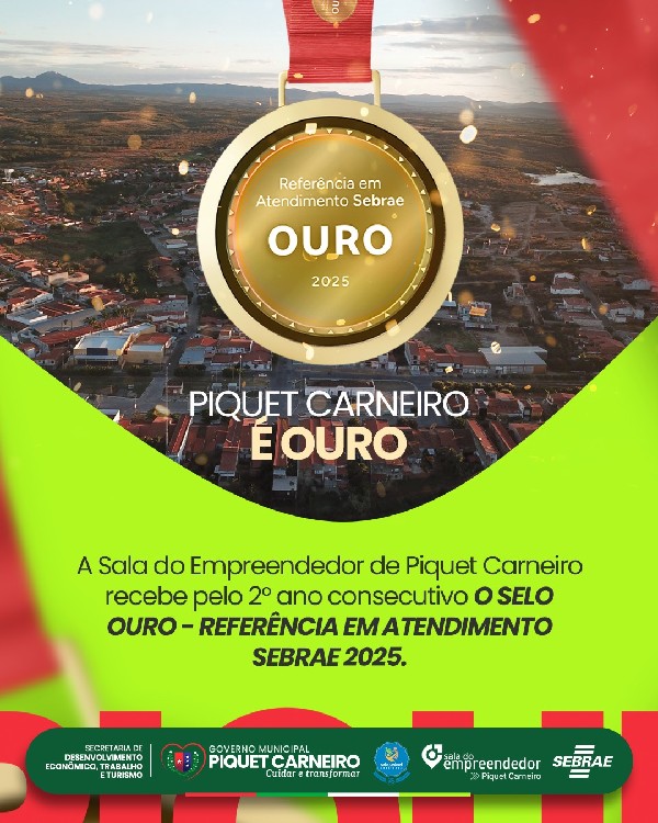 A Sala do Empreendedor de Piquet Carneiro conquistou, pelo 2º ano consecutivo, o Selo Ouro - Referência em Atendimento SEBRAE 2025, reconhecimento que destaca a qualidade, eficiência e excelência no atendimento aos empreendedores do município.