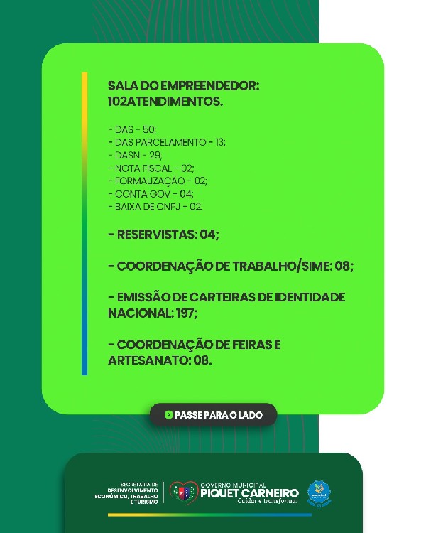 A Secretaria de Desenvolvimento Econômico, Trabalho e Turismo (SDETT), torna público o balanço das ações realizadas durante o mês de fevereiro/2026.