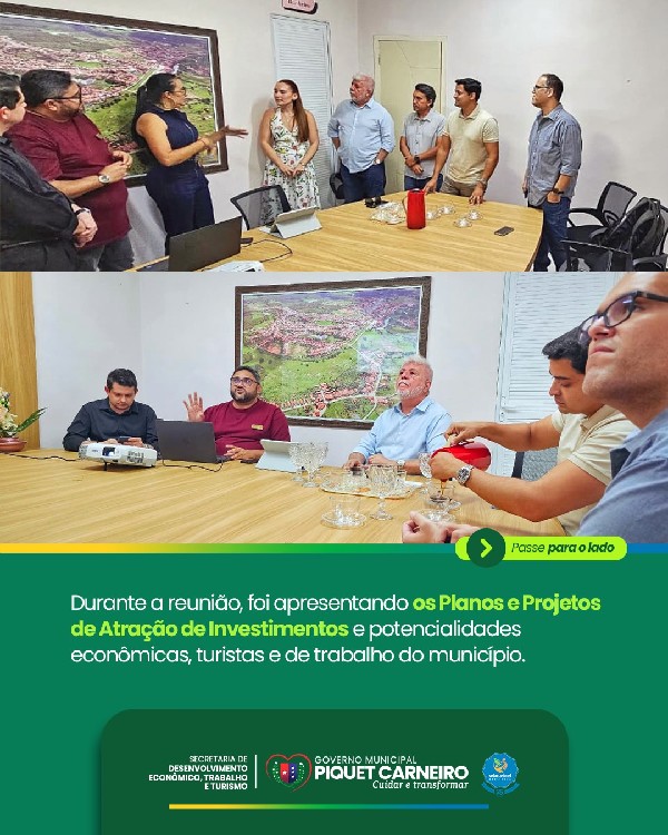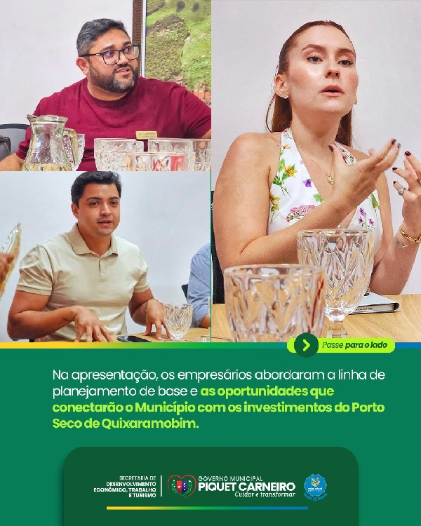 A iniciativa reforça o compromisso da gestão municipal em fortalecer o desenvolvimento econômico, gerar oportunidades e preparar Piquet Carneiro para um novo ciclo de crescimento.